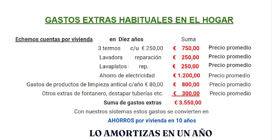 Por ejemplo en la zona de Mogán en Gran Canaria, un termo te puede durar entre un año y medio y dos años para que te hagas una idea , a esto le sumamos los desperfectos que tendrás en la lavadora y el lavavajillas, etc.