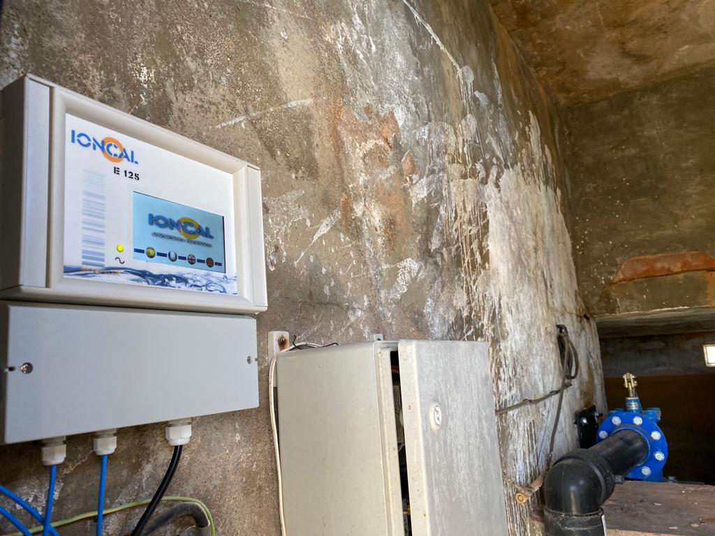 Montaje de un equipo para la protección del municipio de 400 habitantes. Gracias a la tecnología IONCAL se protegerán las redes municipales, así como las instalaciones en el interior de las viviendas de los residentes. Protegiendo contra las incrustaciones las tuberías y electrodomésticos de las casas particulares.